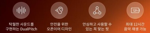오픈-이어 디자인으로 귀를 막지 않아 운동시에도 주변 환경에서 오는 모든 소리를 인지할 수 있어 안전성을 높이고  주위와 융합할 수 있게 지능적으로 볼륨을 최적화하여 선명한 오디오 품질을 제공합니다.